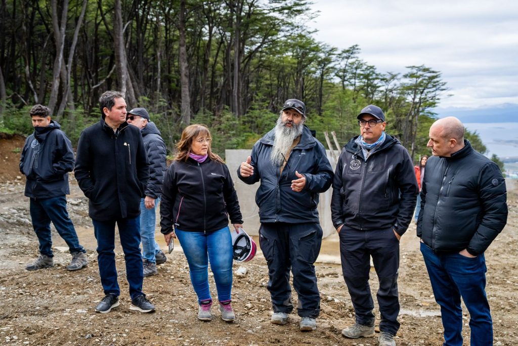 De la recorrida participaron la ministra de Obras y Servicios Públicos, Gabriela Castillo; el presidente del Instituto Fueguino de Turismo, Dante Querciali; integrantes del directorio del Cerro Martial, Alejandro Guzmán y Alejandro Affonso, junto a equipos de montaña y representantes de la empresa internacional especializada a cargo del montaje del nuevo medio de elevación.